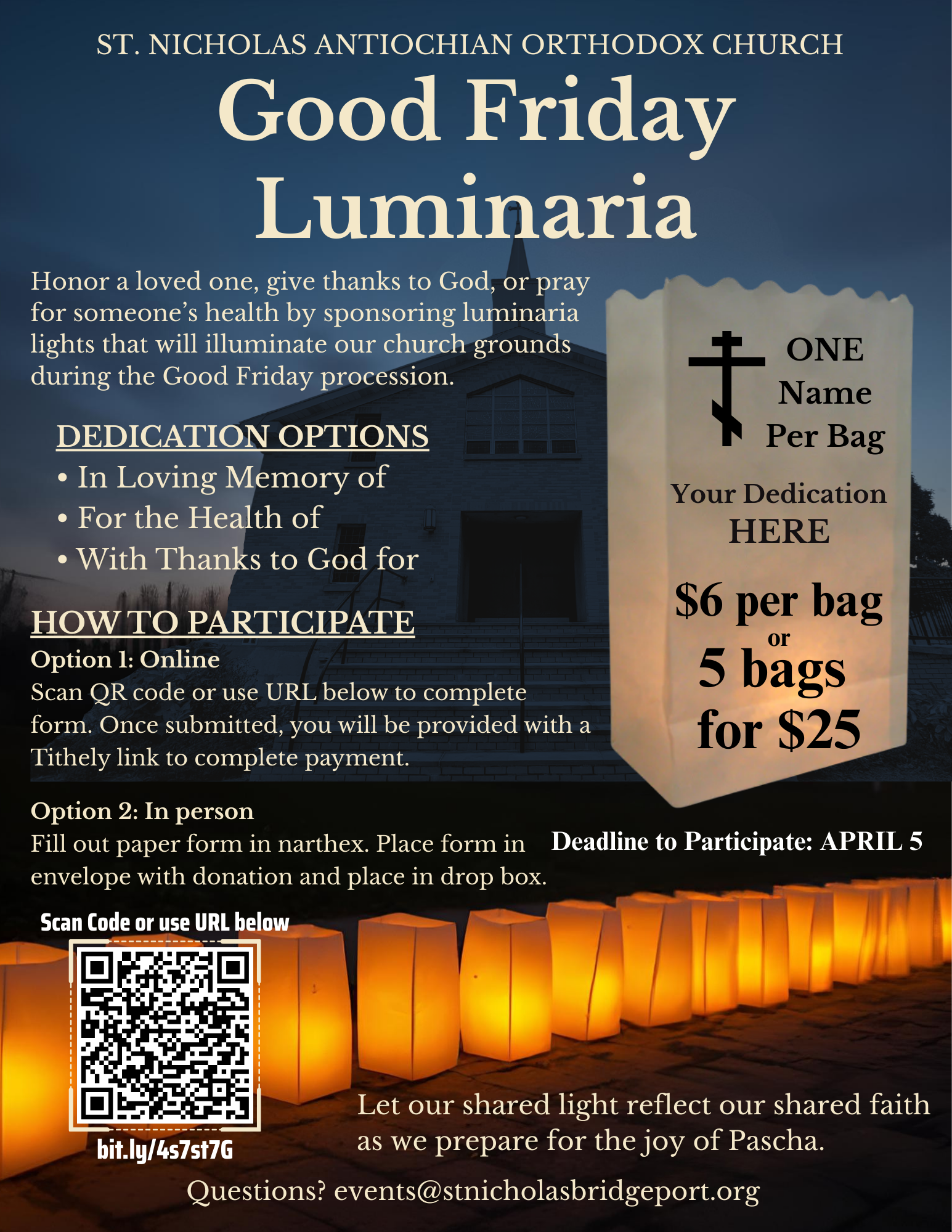 Thank you for your continued generosity, prayers, and participation in the ministry and mission of Saint Nicholas Antiochian Orthodox Church. Your efforts make so many things possible for our parish, community, and Church.